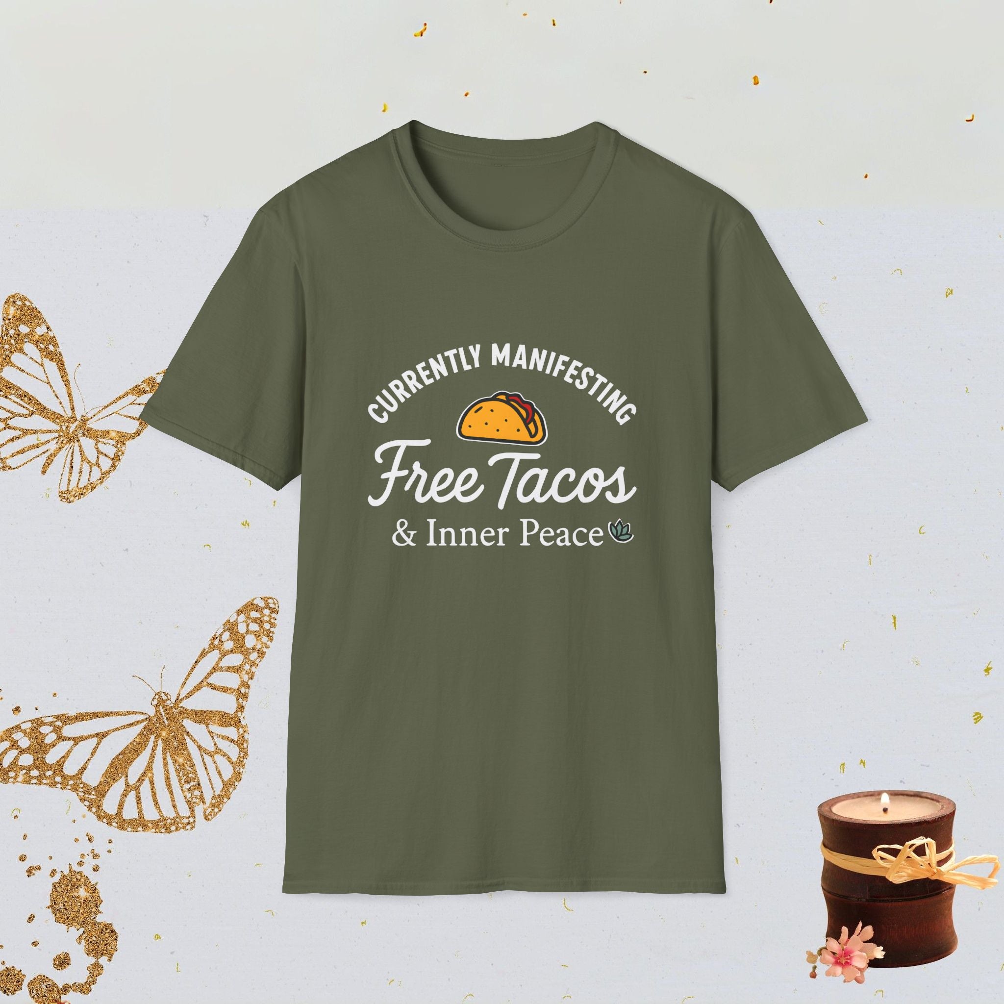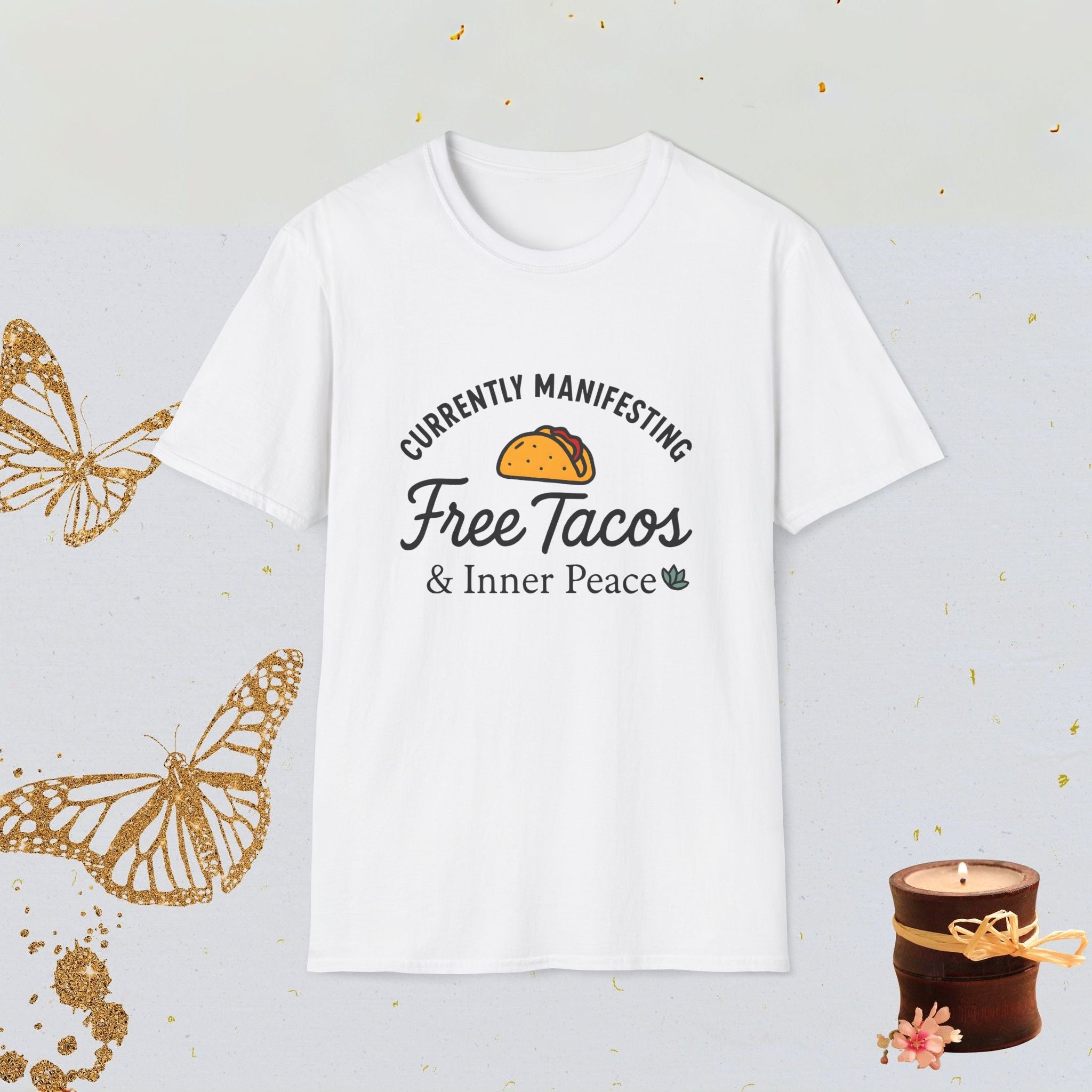 Because balance looks like tacos and tranquility. This “Currently Manifesting Free Tacos & Inner Peace” tee is for foodies, spiritual souls, and anyone who loves their manifestations served with extra salsa. Perfect for taco nights, meditation sessions, or casual everyday wear, it’s equal parts humor and good vibes.