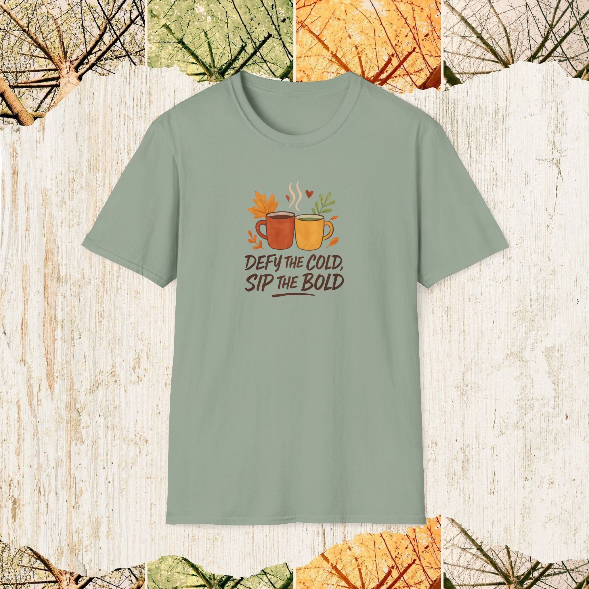 Beat the chill with coffee in hand. This “Defy the Cold, Sip the Bold” tee is perfect for autumn mornings, winter nights, and anyone who fuels their day with a strong brew. ☕❄️