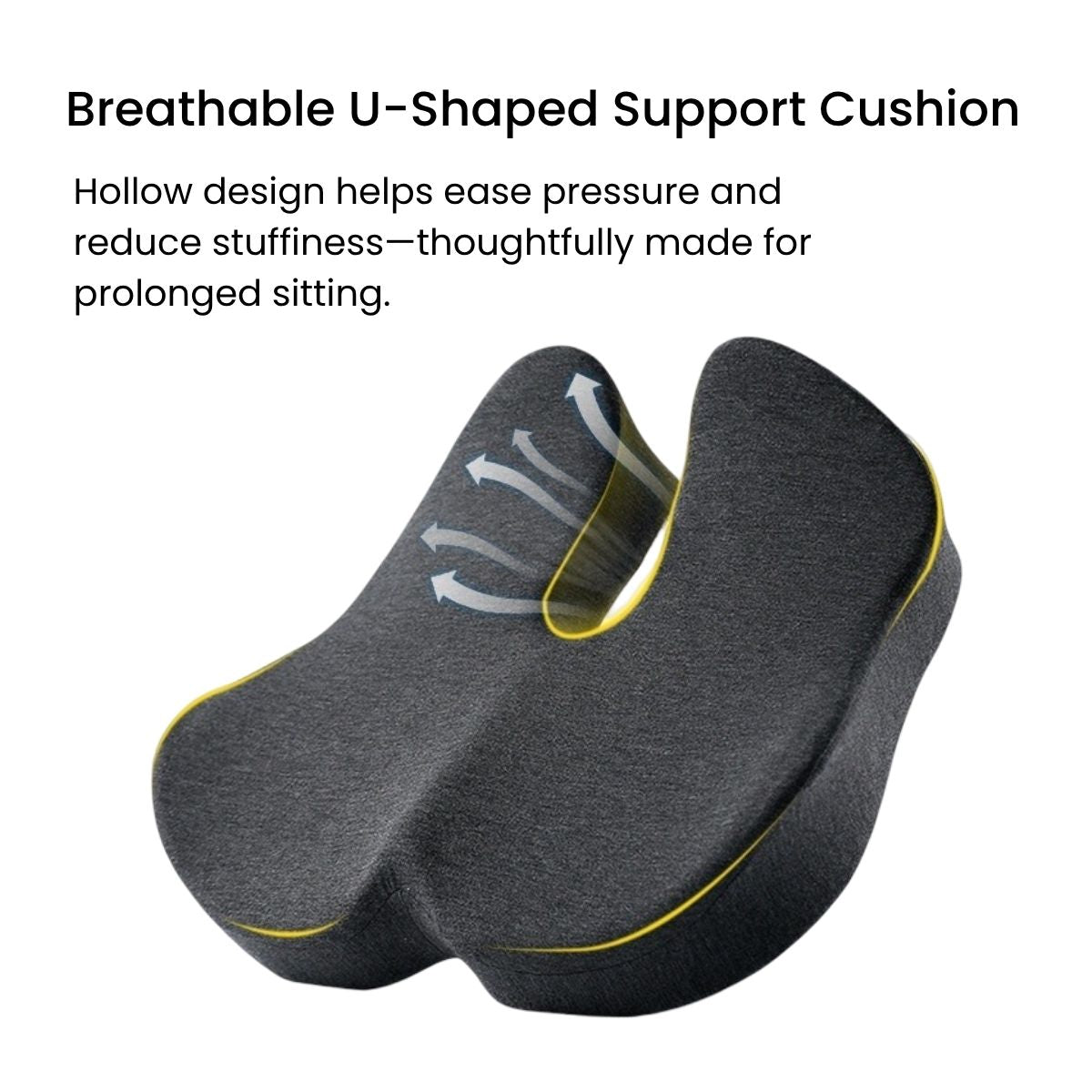 ✔ Pressure-Relieving U-Shape Design – The ergonomic hollow cutout reduces strain on your tailbone, hips, and thighs, promoting proper posture and all-day comfort.