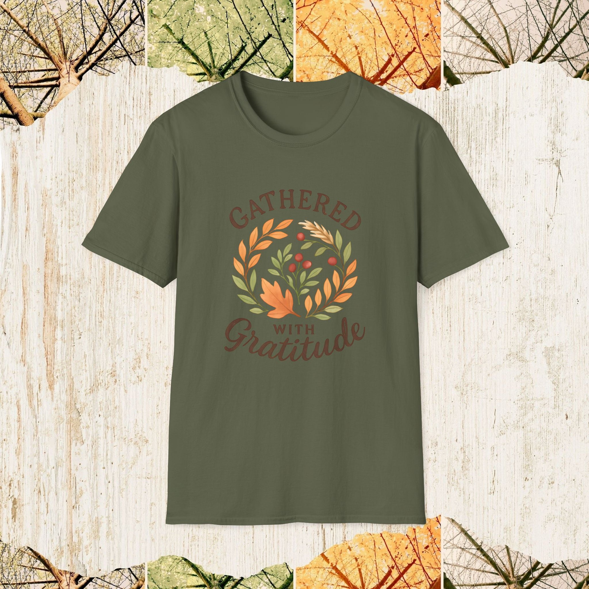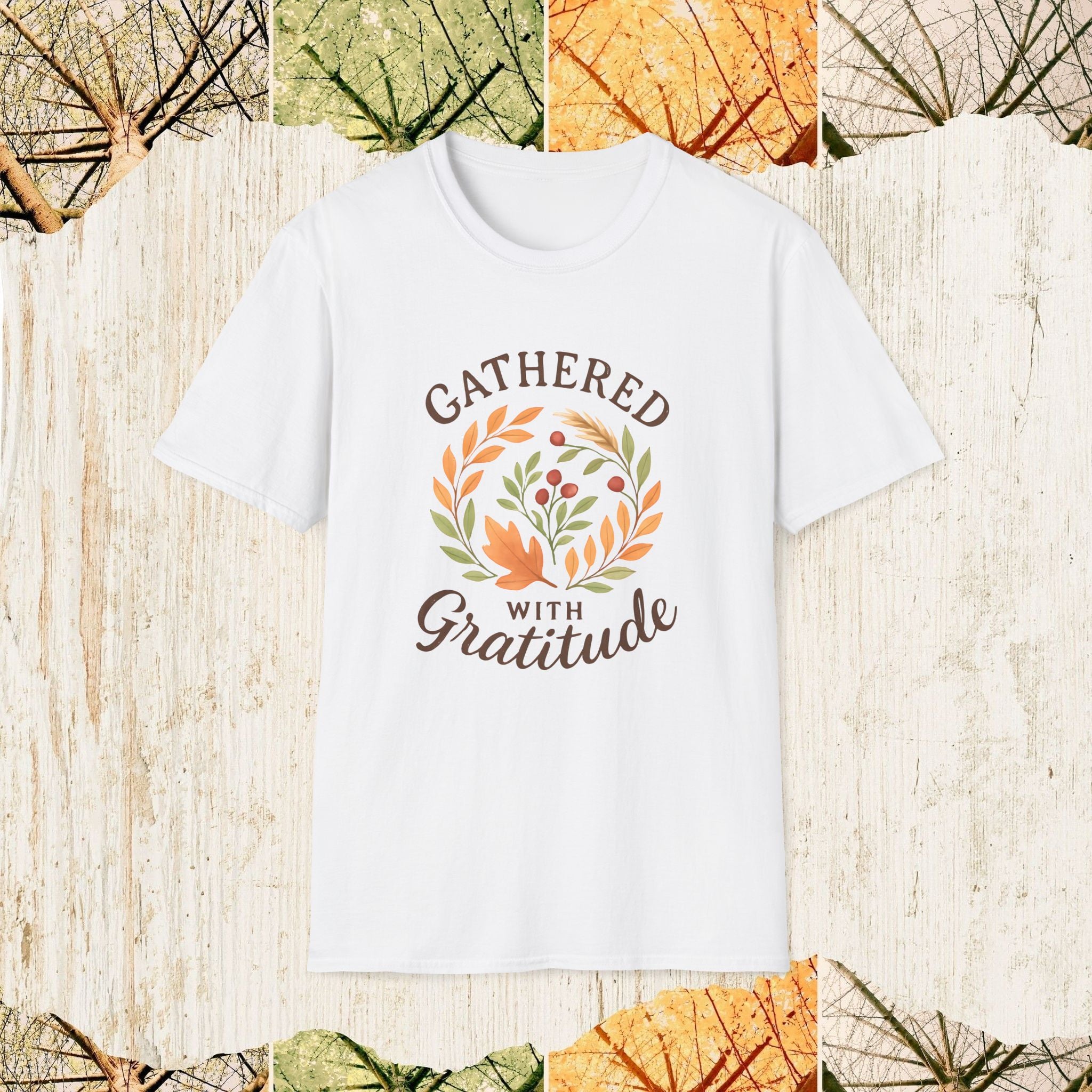 Celebrate the season of thankfulness with this “Gathered with Gratitude” tee. Perfect for Thanksgiving, family dinners, and cozy autumn days, it’s a simple reminder to cherish every moment. 🍂🦃