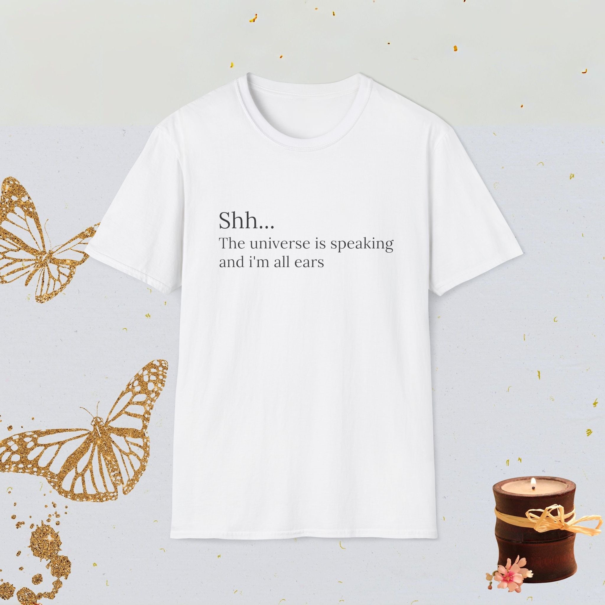 Quiet the noise, tune into the cosmos. This “Shh… The Universe Is Speaking and I’m All Ears” tee is for dreamers, manifestors, and spiritual souls who trust the whispers of the universe. Perfect for yoga, meditation, journaling, or everyday wear, it’s a gentle reminder to stay open and aligned.