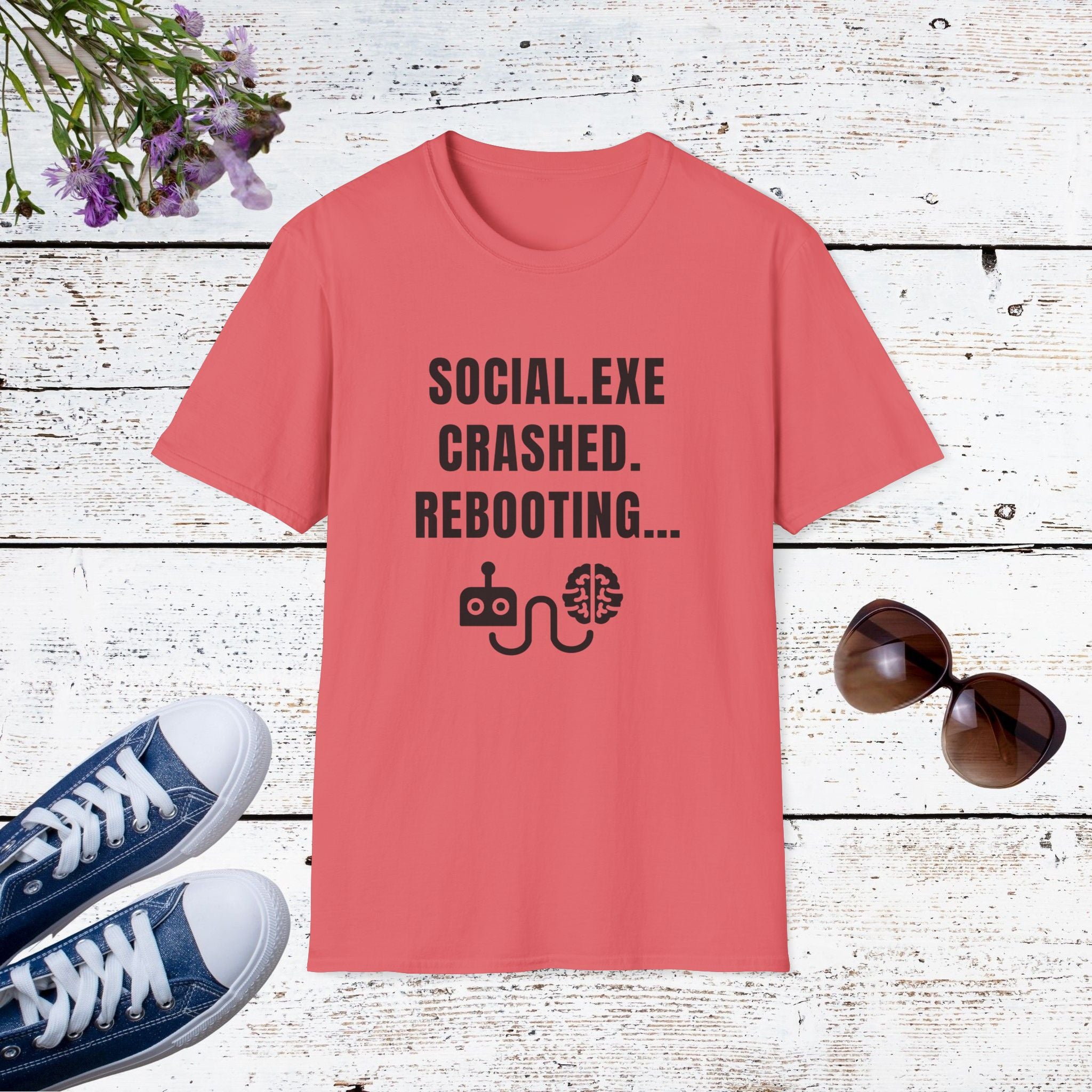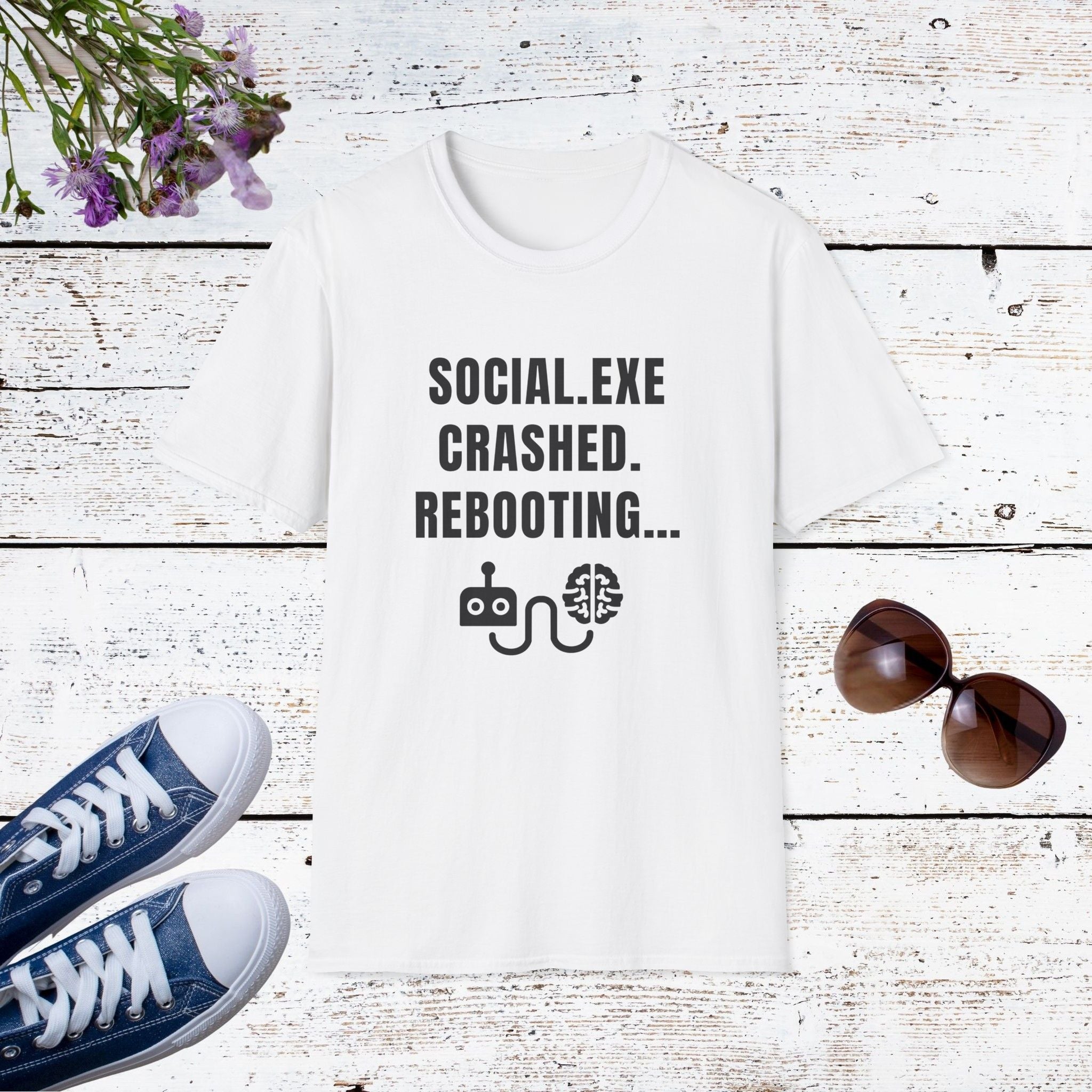 Ever feel like your social battery just blue-screened? This witty “Social.exe Crashed — Rebooting…” tee speaks to every introvert, coder, and sarcasm connoisseur who’s been done with small talk.